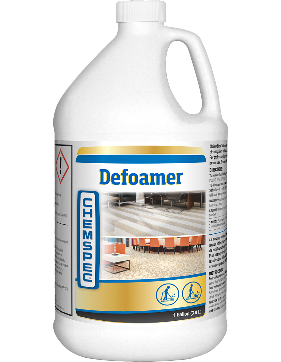 Our Defoamer instantly decreases foam levels in hoses and waste tanks by using a unique blend of reducing agents. Use when cleaning fibers with high levels of detergent residue from previous cleanings or to pick up detergent spills. Convenient liquid formula simplifies application. Controlling foam in your equipment helps to preserve operating efficiencies and protects pumps and blowers against potential damage.