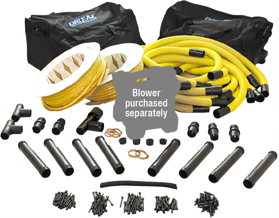 The DriForce Air Drying System (w/o airmover) can dry inside walls and cabinets fast. When used with the DriForce Airmover base unit (purchased separately), the Accessory Kit allows you to direct high-pressure air into wall cavities, cabinetry and other dense construction assemblies for fast, effective drying.
