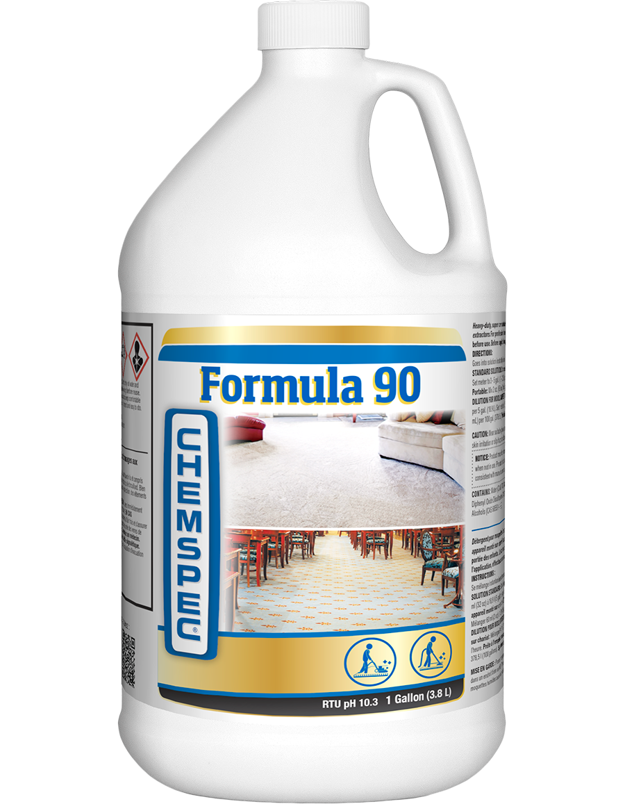 Formula 90 is a heavy-duty, highly concentrated, triple-strength carpet cleaning detergent for use with truckmounts or portable extractors. Delivers consistent, powerful cleaning on every job.