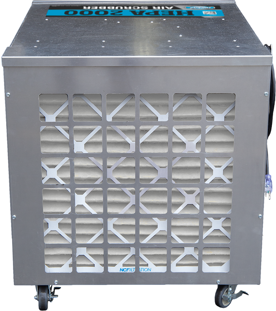 Our high-volume, high-efficiency air filtration system, HEPA 2000 Air Scrubber is an optimal performing unit. Featuring two-stage filtration technology, this unit removes extremely fine airborne particles such as dust, mold spores, pollen, pet dander and miscellaneous debris. Suitable for use in homes, light industrial settings, schools, hospitality venues and healthcare environments, the variable airflow and 12-in ductable outlet enable use in containment setups or wherever portable and effective HEPA filtration is needed. Its quieter operation makes it especially useful in large occupied spaces.