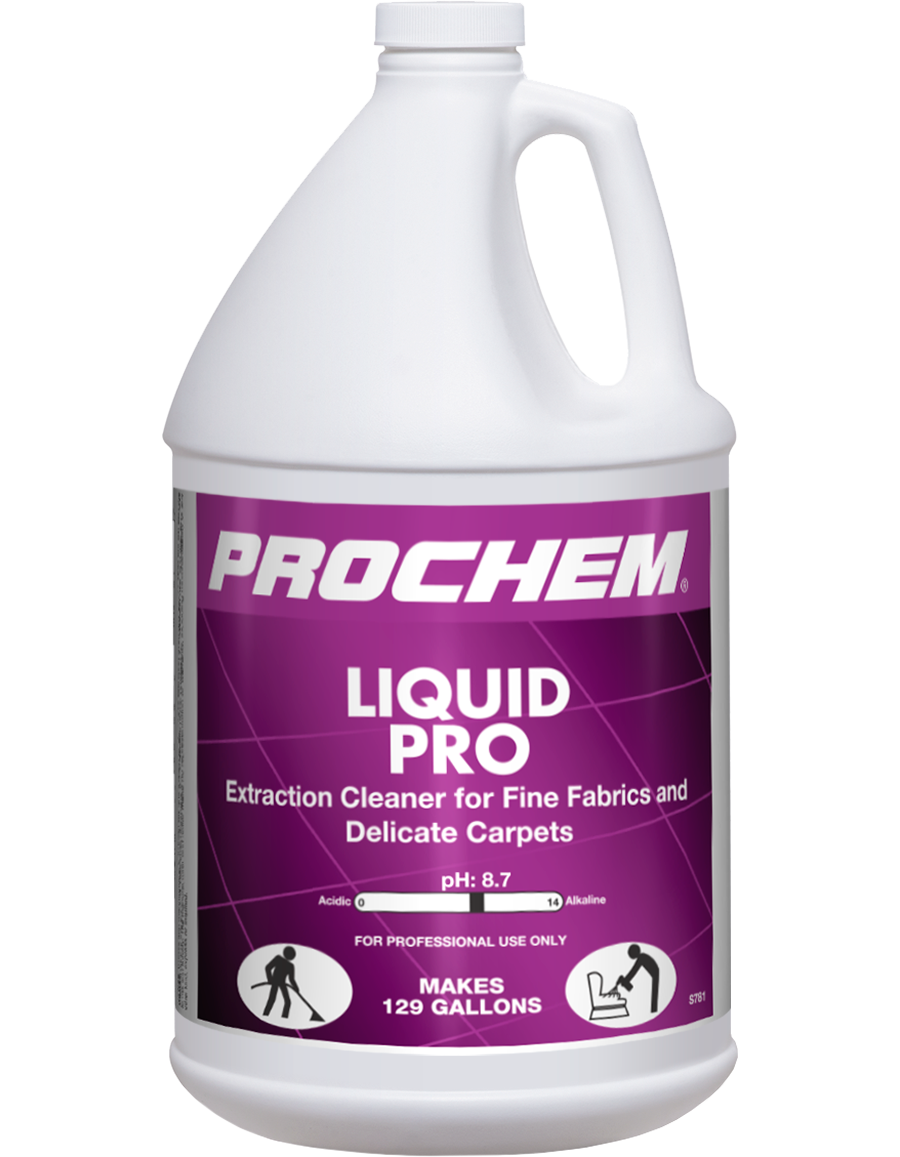 Liquid Pro extraction rinse is ultra-concentrated and economical, and is an ideal second step in the two-step hot water extraction upholstery cleaning process to remove soils suspended by Prochem’s Upholstery Prespray. This two-step upholstery cleaning system is formulated to outperform other synthetic fabric cleaning agents on the market!